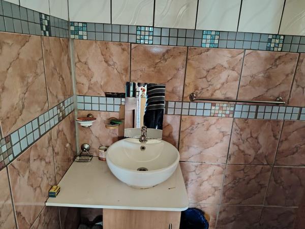 The home is fully tiled throughout and features a neat kitchen with built-in cupboards, granite countertops, and a large gas stove, ideal for home cooking. The bathroom is fully tiled and fitted with a shower and toilet, complemented by a separate guest toilet with basin for added convenience.