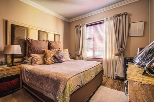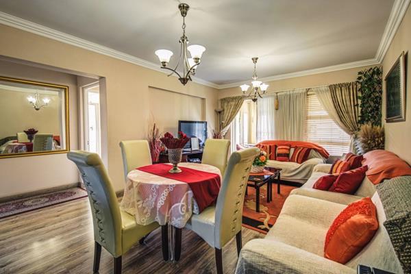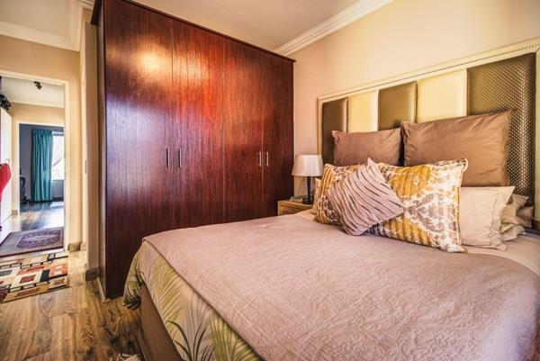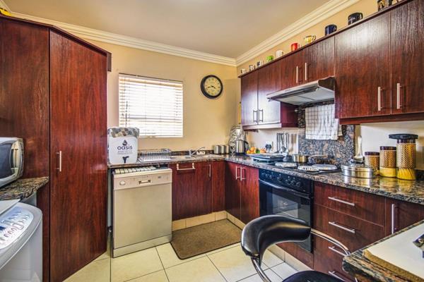 Offering 2 beds, 2 large bathrooms, open-plan living, spacious kitchen with granite finishes, electric hob, built in cupboards and room for under counter appliances. The lounge leads onto a private covered patio, warm, cosy bright living in pristine condition.