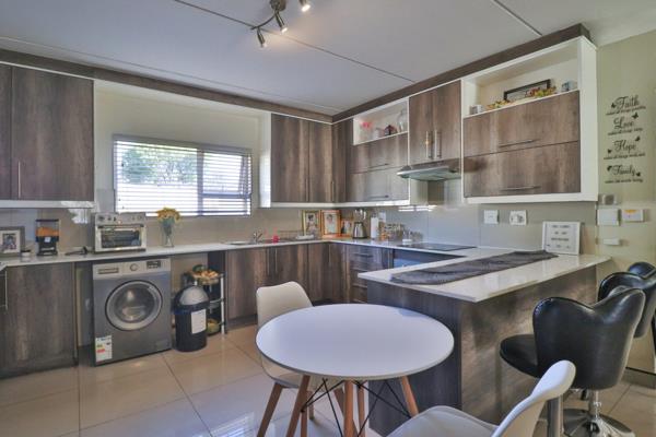 Welcome to your dream home! This ground floor unit is the epitome of modern living, offering both style and convenience in a sought-after complex. Step into a stunning open-plan kitchen adorned with elegant caesarstone countertops, seamlessly flowing into a cozy lounge area that opens up onto a covered patio and private garden, creating a safe and enjoyable space for children to play and for relaxed family time outdoors.. This space is perfect for both relaxation and entertaining. The home boasts three spacious bedrooms, complemented by two sleek, contemporary bathrooms. Beautifully tiled throughout, the unit offers a blend of style and comfort. The complex adds a touch of luxury with a sparkling swimming pool and a convenient braai area, ideal for hosting gatherings or enjoying leisurely weekends.