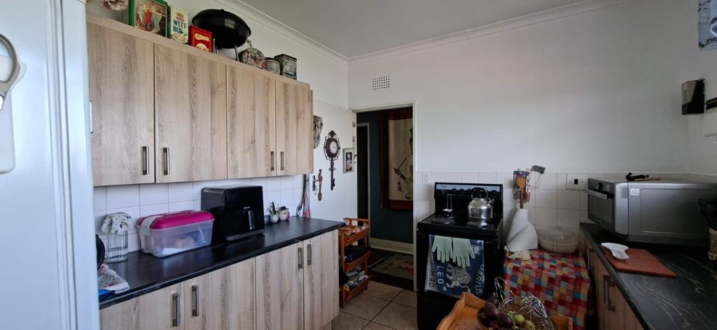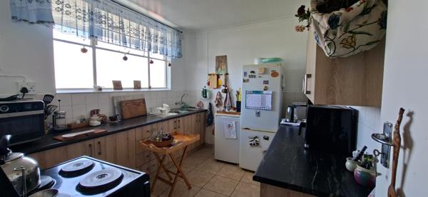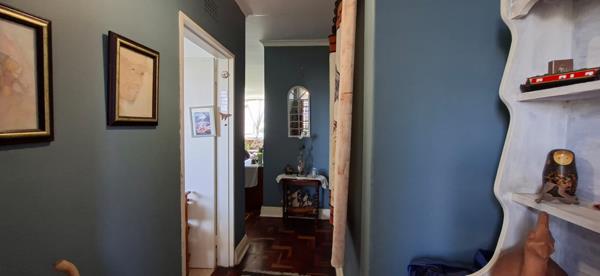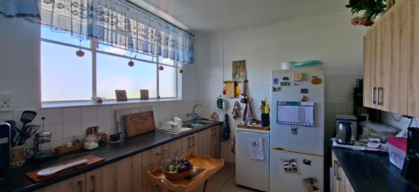 A wide entrance with elegant parquet flooring welcomes you into the home and leads to a functional kitchen featuring ample built-in cupboards and space for appliances.