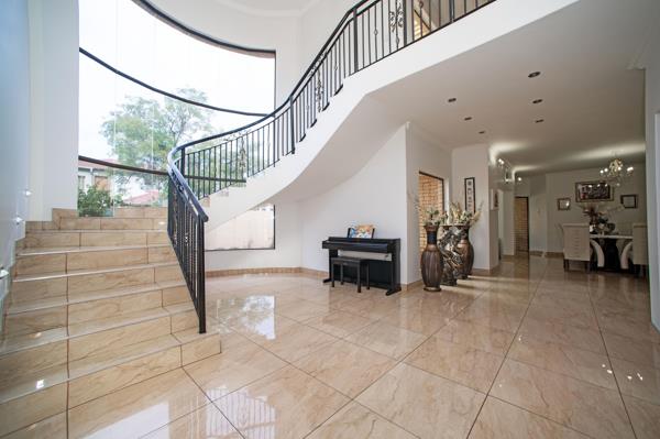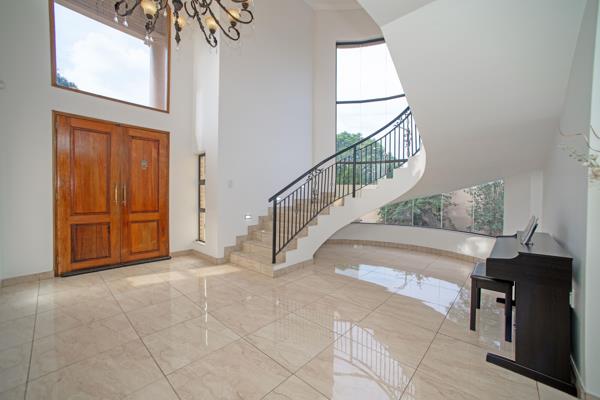 From the moment you enter, you are welcomed by a striking double-volume entrance hall and elegant staircase, framed by expansive glass windows that flood the home with natural light and create a wonderful sense of space and comfort.
