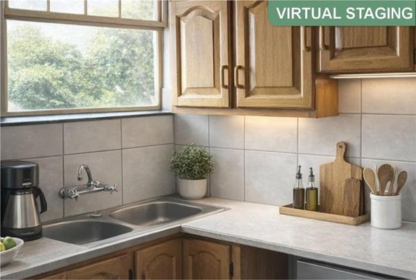 Smart Infrastructure: A functional kitchen with ample cabinetry and a separate toiletbathroom layoutperfect for modernizing.