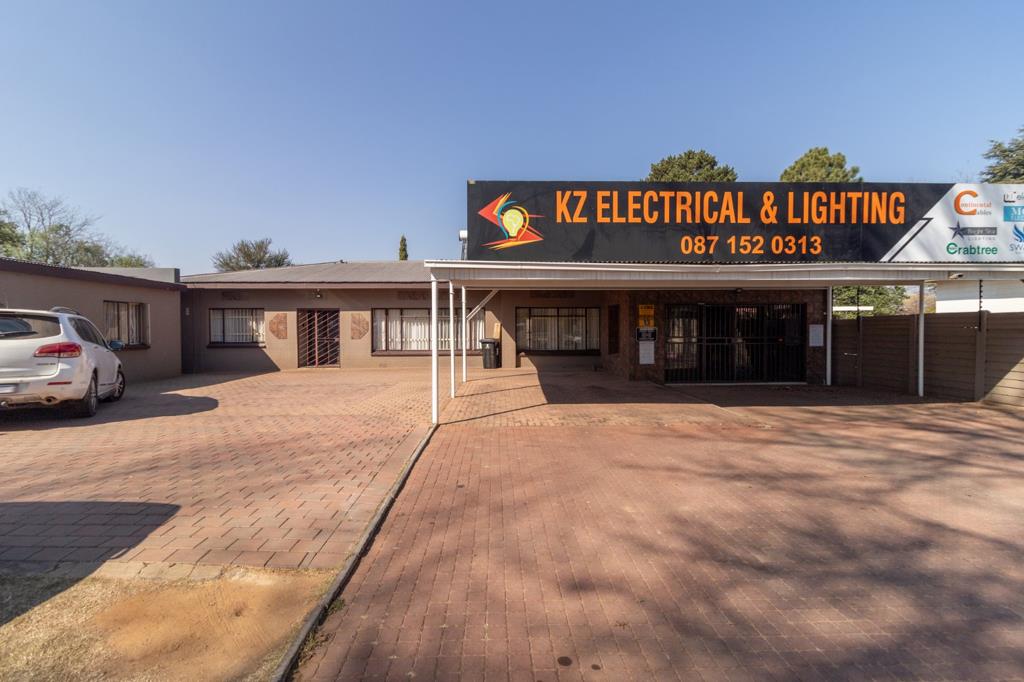 The business section features a professional showroom with fitted units, a service counter, a full storeroom, and a private office, all designed for maximum visibility and convenience.