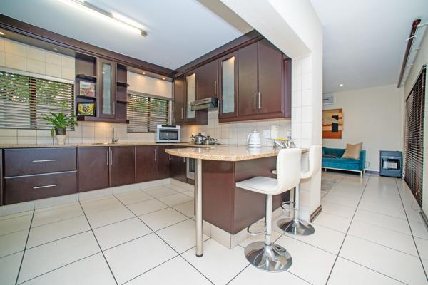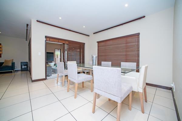 Stacking doors lead you to a covered patio with a built-in braai, creating the ideal setting for outdoor dining, relaxed weekends, and enjoying your private garden year-round.