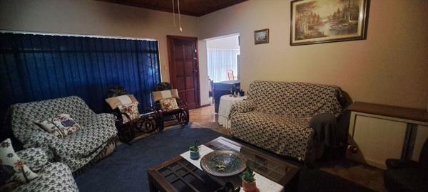 The lounge and dining room provide generous spaces for relaxation and entertaining. The home features three well-sized bedrooms, all fitted with three built-in cupboards BIC, and a shared bathroom. Outdoors, a sparkling swimming pool creates the perfect setting for leisure and family enjoyment.