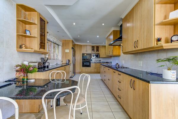 From the moment you enter through the spacious foyer, you''re greeted by an elegant sunken lounge to your right and a chefs dream kitchen to your left. The well-appointed kitchen features granite countertops, an eye-level oven, ample cabinetry, a breakfast counter, separate scullery, and a laundry roomperfect for both everyday living and entertaining.