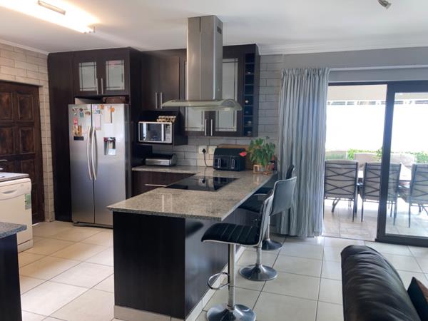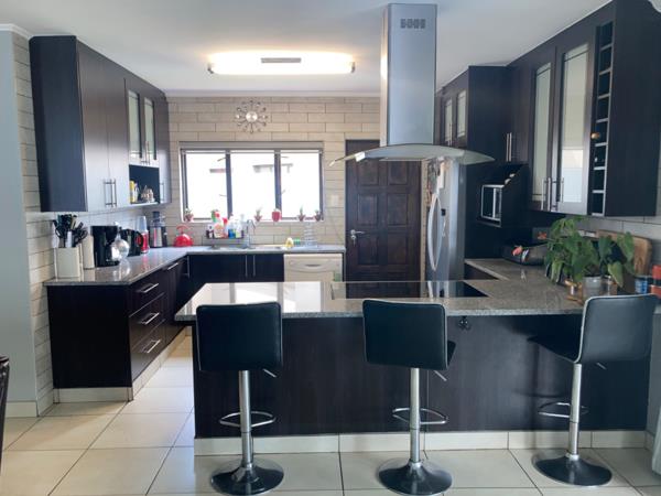 This stunning property is designed with entertaining in mind. Down stairs it offers spacious open plan living, including the lounge, guest bathroom, dining and kitchen area, leading to the under cover patio, pool and braai area, featuring a pizza oven.The open plan kitchen boasts granite tops, gas/electric stove and ample cupboard space.
