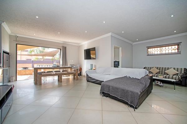 The true showstopper is the entertainment area, complete with a built-in braai and seamless connection to the pristine, manicured garden. Here youll find your own outdoor haven featuring a sparkling pool and a cozy boma area perfect for unforgettable gatherings or tranquil evenings under the African sky.