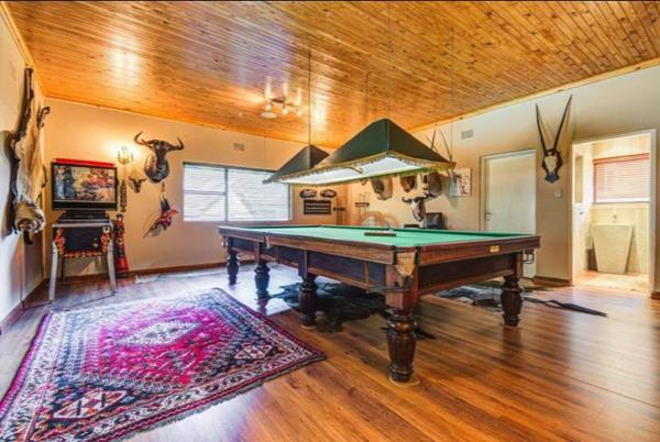Outside you have an undercover boma and a separate patio with a gas braai, a build in braai and a swimming pool.