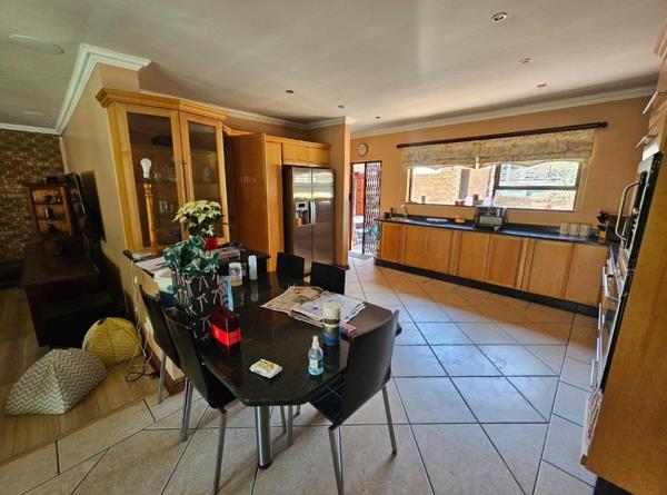 Discover this charming suburban residence located in the desirable area of Rynfield, Benoni. This property offers a harmonious blend of comfortable living and outdoor enjoyment, set on a generous 1965 sqm erf. The home presents a welcoming brick exterior with a grand, columned entrance, ensuring a strong first impression and excellent kerb appeal.