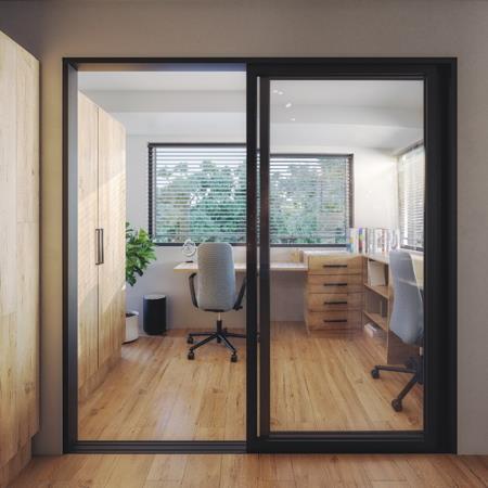 The upstairs area includes a second lounge. Four bedrooms, three bathrooms. A big feature of this design is the separate study with lovely large glass windows and counter tops.