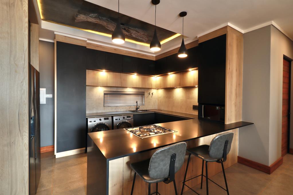 Open plan lounge, dining room & kitchen with SMEG gas stove and separate scullery and laundry for Penthouse units