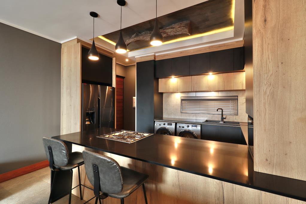 Open plan lounge, dining room & kitchen with SMEG gas stove and separate scullery and laundry for Penthouse units
