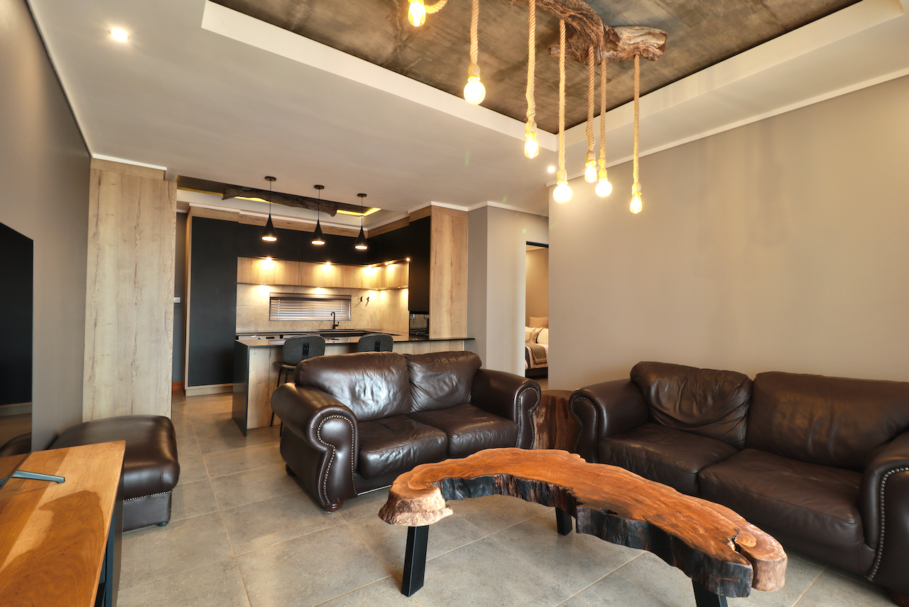 Open plan lounge, dining room & kitchen with SMEG gas stove and separate scullery and laundry for Penthouse units