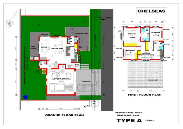 Plan D - Double Storey - 226m2 - R3 742000 - 4 Bedrooms, 3.5. bathrooms, study, 2 living rooms, kitchen, scullery, double garage.