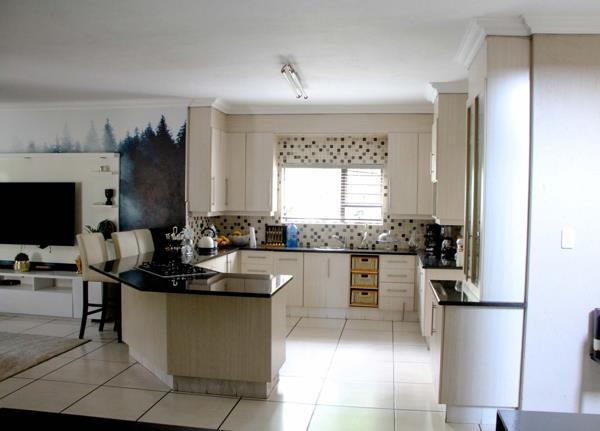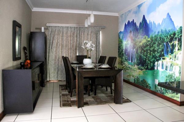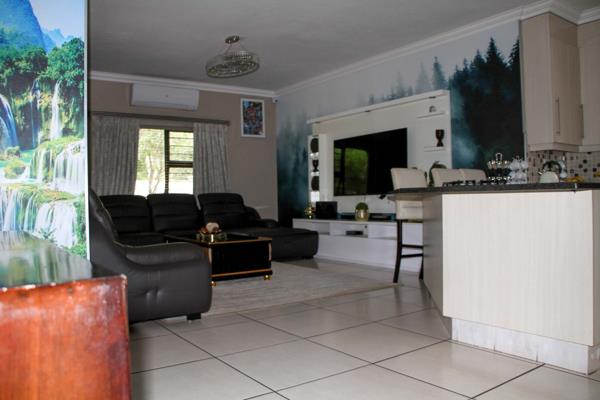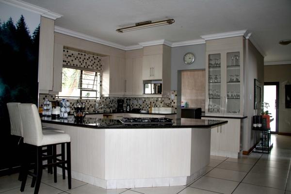 With its double volume entrance and spacious open plan layout which seamlessly integrates the living rooms, dining area and the maple wood kitchen, it is a home made for upmarket living. The bedrooms upstairs are equally comfortable in size and have two bathrooms with the main bedroom having a spacious en-suite. An immaculate garden surrounds this beautiful home with a spacious veranda - it''s the perfect place to enjoy those sundowners on a hot summer night. An added addition is the air condition units in every bedroom and living area, its a must-see.
