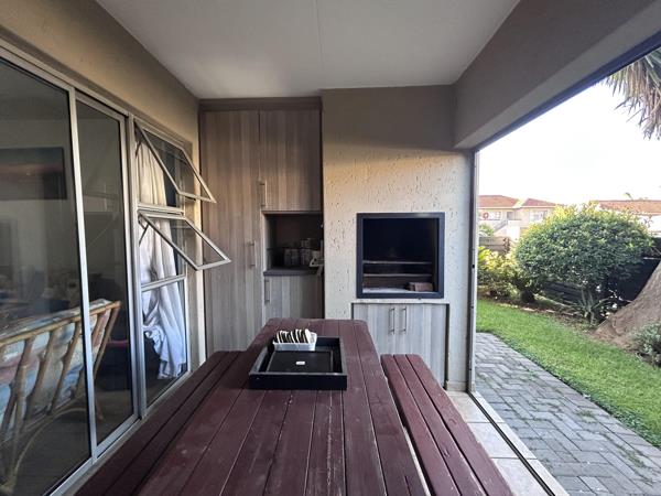 The 2 bedrooms are very well sized, and the bathroom is modern with bath and shower. The kitchen boasts with granite tops, a 4-plate gas stove, breakfast nook, corner pantry cupboard, double basin and space for fridge and 2 appliances. The open plan living area leads through sliding doors to a covered patio with built in braai, additional storage space and your own private garden.