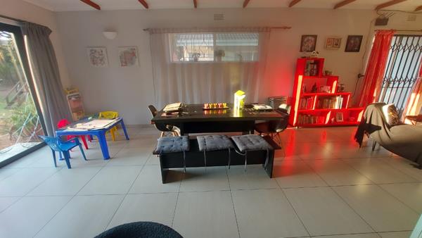 This lovely 3-bedroom, 2-bathroom home is a great find in Rynfield. It has a big open-plan lounge and dining room with sliding doors that open to the garden. Theres also a study and a playroom, perfect for working from home or for the kids.