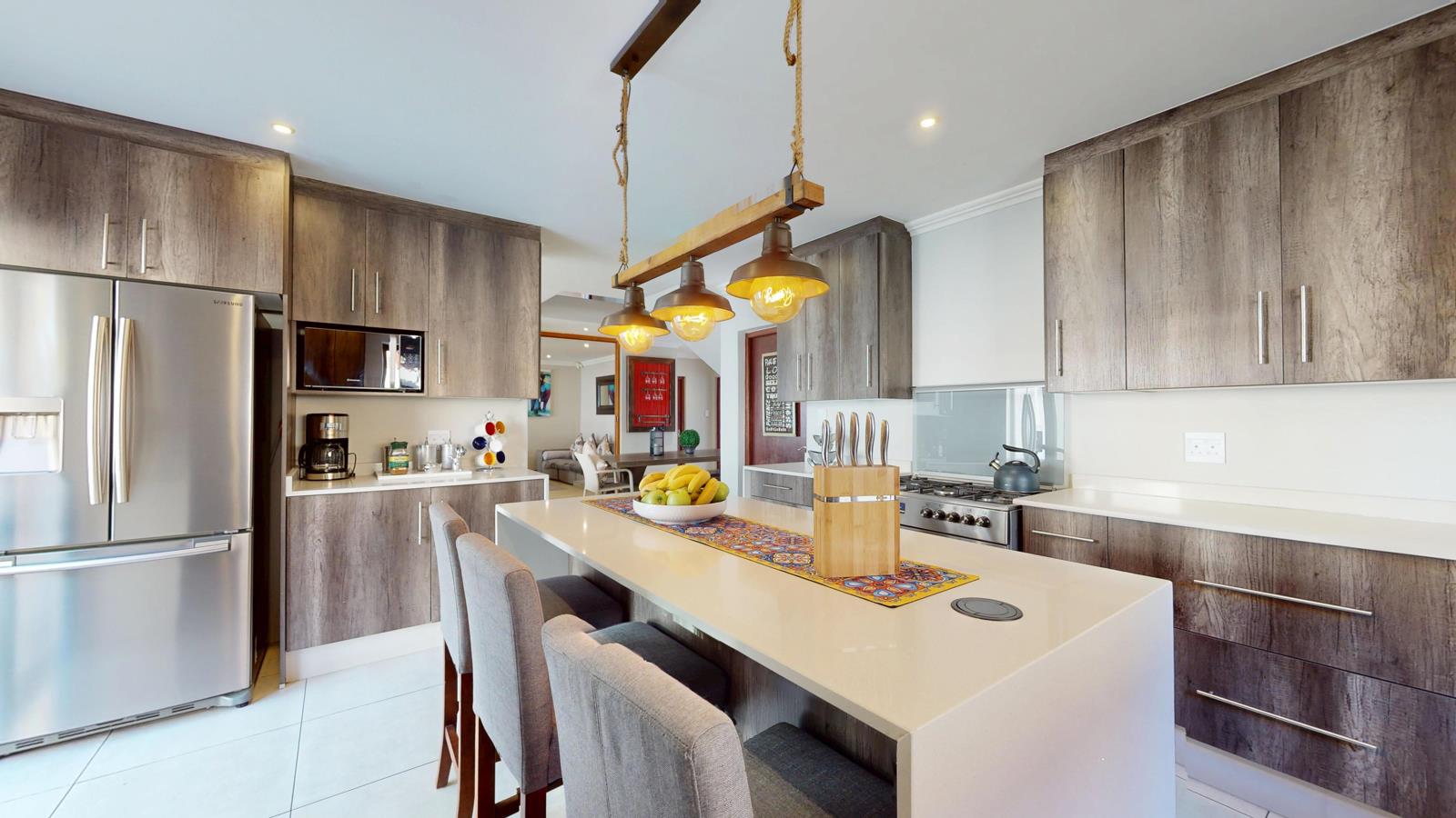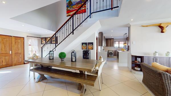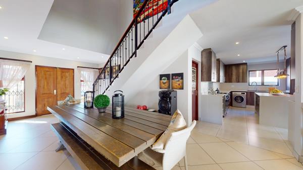 This immaculate 4-bedroom home, located in a secure freehold complex in Rynfield, Benoni, offers premium family living with high-end finishes throughout. Upstairs features four spacious bedrooms, two modern bathrooms, and a comfortable pyjama lounge ideal for relaxed family time or a quiet reading corner. The west facing master bedroom is well appointed and has walk in cupboards leading to the en-suite bathroom.