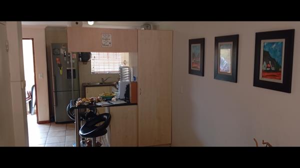 A lovely duplex townhouse home in Rynfield in a sought after neighborhood . It is in a small complex with 20 houses with gated controlled entrance and walled in with electric fence on top .It has a garage and another open parking. On the ground a small garden between the garage and entrance to a comfortable lounge and nice open plan kitchen. It also has a guest toilet and basin and a closed space for the washing machine under the stairs. The kitchen open to an enclosed outside and ldquokuier and rdquo area. Upstairs is two bedrooms one with an en-suite bathroom with a shower. The other bathroom has a bath.Solar geyser and gas stove.