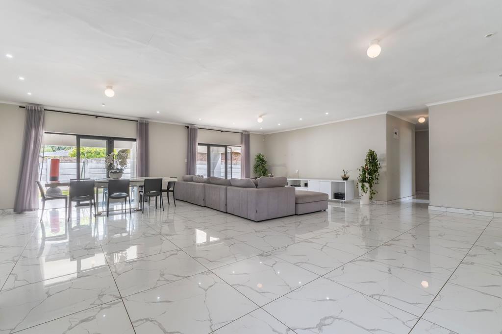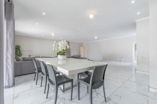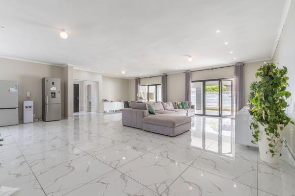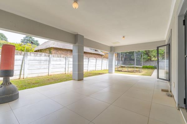 The home features four bedrooms, with the main bedroom offering an en-suite bathroom and a spacious walk-in closet. A large open-plan living area flows out to a spacious covered patio with built-in braai, creating great potential for future entertaining. The property also offers a decent-sized garden, an extra-length garage, and security beams installed for added peace of mind.