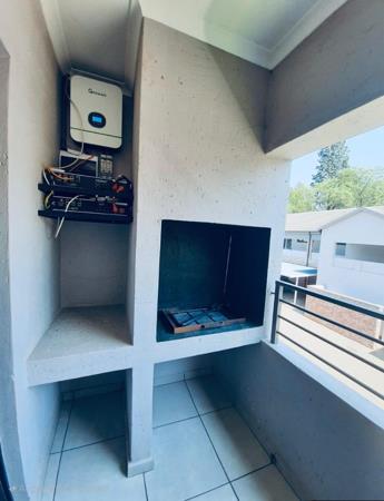 Enjoy outdoor relaxation on your private balcony, complete with a built-in braai for entertaining. This home prioritizes sustainability and energy independence with a Growatt solar inverter and battery system, a solar geyser, and water tanks, significantly reducing utility costs. The complex ensures peace of mind with 24-hour security, an alarm system, access gate, electric fencing, and intercom. Fibre connectivity is available, and pets are allowed, adding to the convenience. With two dedicated parking spaces, this apartment offers a complete package for comfortable and secure living in Rynfield.