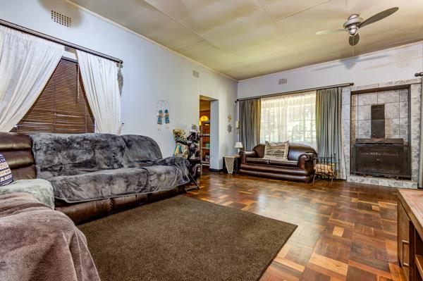 The main house offers four bedrooms and two bathrooms, with wooden flooring adding character and a fireplace creating a warm focal point in the living area. The home also includes a large functional kitchen and pantry cupboard, well suited to everyday family life.