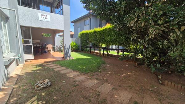 Step outside to discover a private, well-maintained garden and a covered, tiled patio, perfect for outdoor relaxation and entertaining. The complex also offers the luxury of a communal swimming pool, ideal for enjoying sunny days. Parking is well-catered for with two dedicated parking bays, including covered options. Residents benefit from excellent security features, including a security complex environment with 24-hour security, an access gate, security gates on the unit, and an intercom system, ensuring peace of mind. The property is also totally walled and equipped with fibre connectivity.