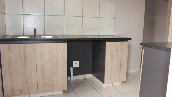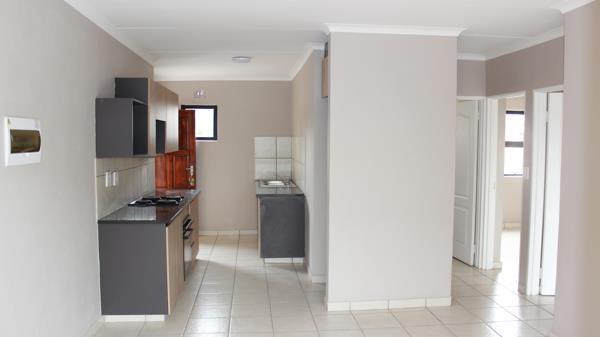All cost included on this comfortable modern living in this two-bedroom apartment in the newly developed Clover Woodlands, Rynfield AH. The unit features two bedrooms with built-in cupboards, a full bathroom, and a fitted kitchen with granite countertops, under-counter oven, and electric hob.