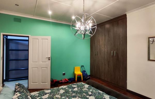 The entertainment area is truly a highlight, seamlessly extending to the outdoors and overlooking a sparkling swimming pool. This inviting space is perfect for hosting family gatherings, weekend braais, or simply relaxing while enjoying the view of the beautifully maintained garden. The generous corner stand enhances the sense of privacy and openness, offering ample space for children and pets to play freely.