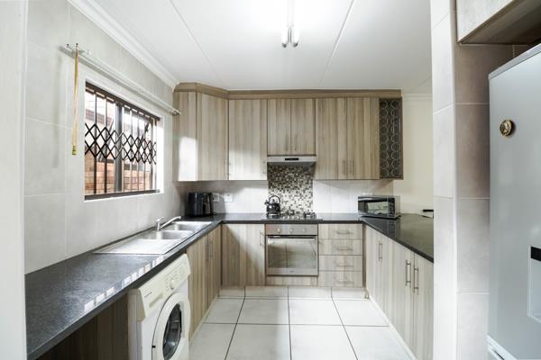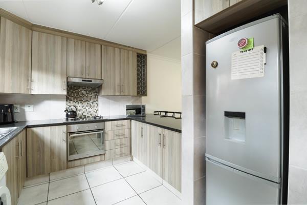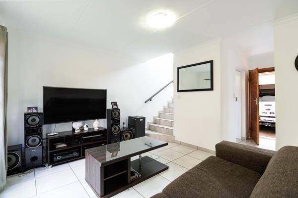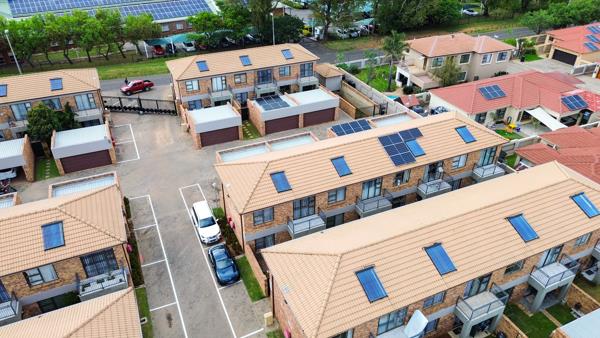 Upstairs you''ll find two well sized bedrooms, each offering comfort and privacy. The home boasts 2 well designed bathrooms adding to the luxurious feel. A private garden area provides a touch of greenery, while the double garage ensures secure parking. Solar panels & geyser provides savings on your electricity bills and convenience during load shedding. The complex itself offers access controlled and Fibre ready. 2 Small dogs are allowed per unit.