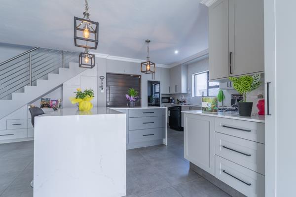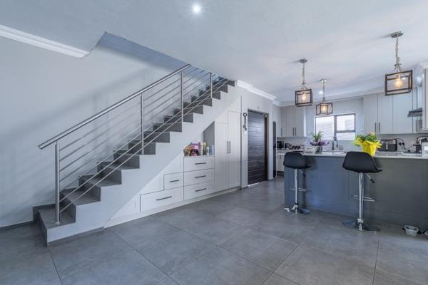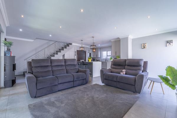 Step inside to an open-plan layout that seamlessly connects the main living areas. The home features two lounges, main lounge downstairs and possibility for a kids lounge upstairs, and a dedicated dining room, providing ample space for both relaxation and entertaining. The functional kitchen is equipped with a convenient pantry, catering to all your culinary needs. An integrated braai room offers an ideal spot for indoor grilling and social gatherings.