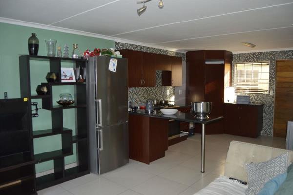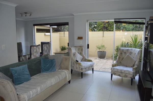 The property features three well-sized bedrooms with three built-in cupboards BIC. There are two bathrooms, including a private en-suite, as well as a guest loo for added convenience.
