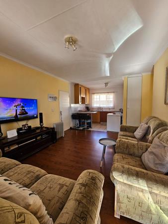 Step inside to a light-filled layout with open-plan lounge flows seamlessly with stylish laminate flooring, while the tiled kitchen offers generous cupboard spaceperfect for everyday living and entertaining alike, while featuring two cozy, carpeted bedrooms and a neat bathroom with a shower, basin, and toilet.