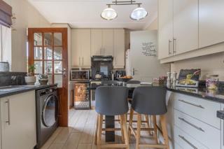 The home boasts a welcoming livingTV room with parquet floors and a gas fireplace, perfect for winter evenings. Sliding doors lead out to a private patio, ideal for weekend family breakfasts or entertaining with a braai. A separate dining room with parquet flooring adjoins the living area.