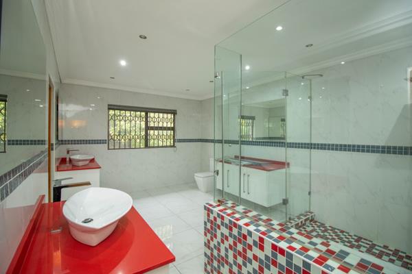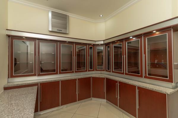 This impressive residence boasts 5 uniquely themed bedrooms, each with a luxurious en-suite bathroom finished to the highest standard. 2 bedrooms feature oversized walk-in closets, while several rooms open onto private balconies that invite natural light and fresh air throughout. At the heart of the home lies a stunning Beechwood kitchen with granite countertops, an electric glass plate stove, 2 eye-level ovens, and a 5-plate gas stove, supported by a separate scullery and pantry for effortless entertaining and daily convenience.