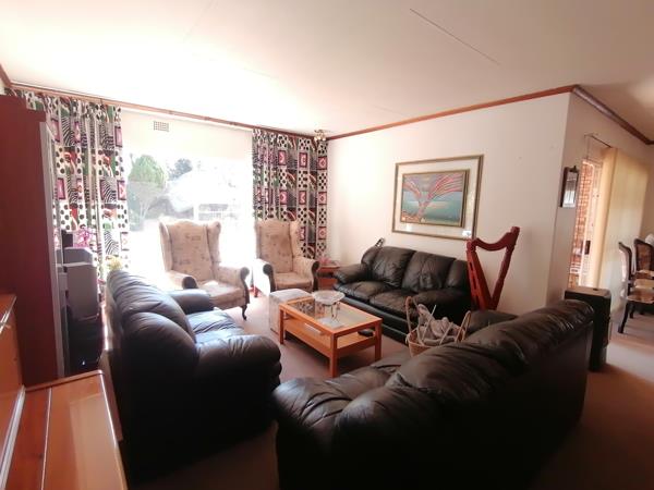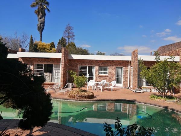 Entrance hall leading into the sundrenched lounge overlooking the spacious garden and pool. Open plan Dining room, kitchen with seperate scullery. Just off from the dining room is the study if needed if working from home. Lovely patio area with built in braai lovely for entertaining your guest on weekends. Huge back garden with enough space for the kids to play and enjoy the outdoors. Outside Lapa overlooking the pool.