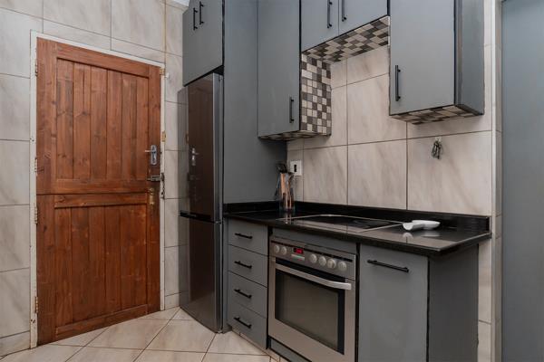 Step outside to a covered entertainment area with built-in braai, overlooking the splash pool and neat, low-maintenance garden. A spacious adjoining storage room offers excellent potential for a flatlet, studio, or utility space.