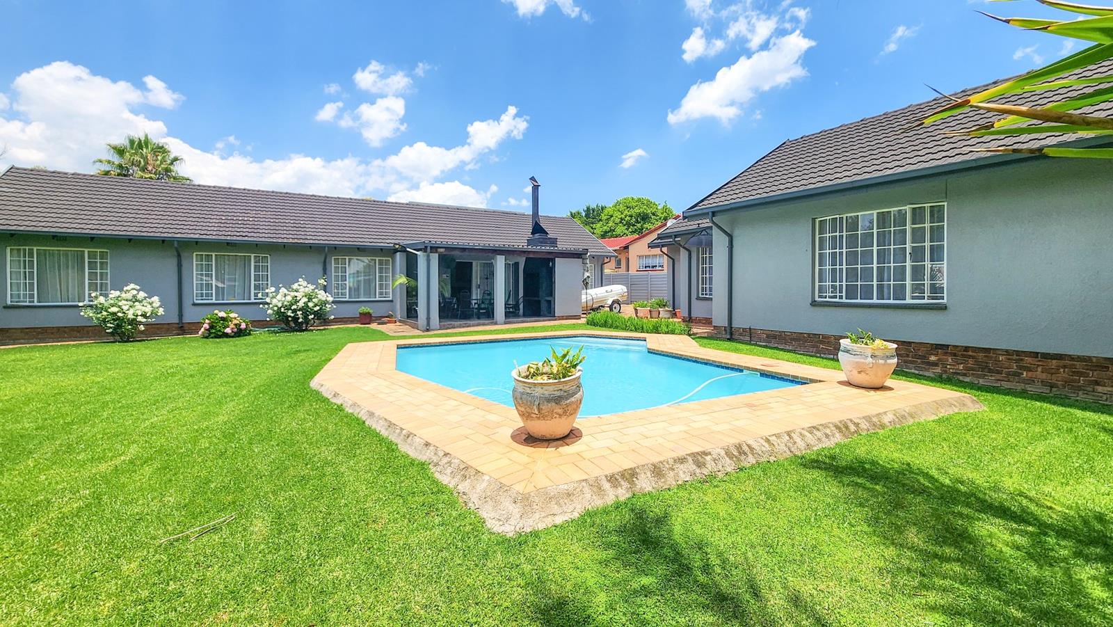 Spend quality time with family and friends on the neat patio with built in braai, overlooking a sparkling swimming pool and established garden - ideal for kids to play and adults to relax.