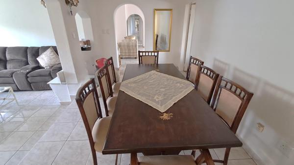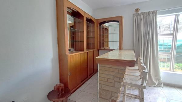 The open-plan dining area flows effortlessly into the inviting TV lounge, complete with a built-in bar, the perfect setting for family gatherings or entertaining friends.
