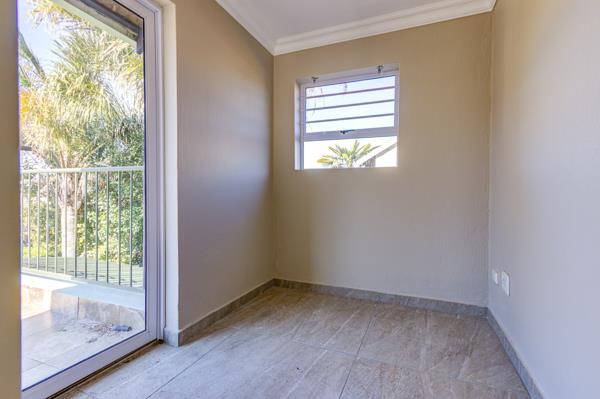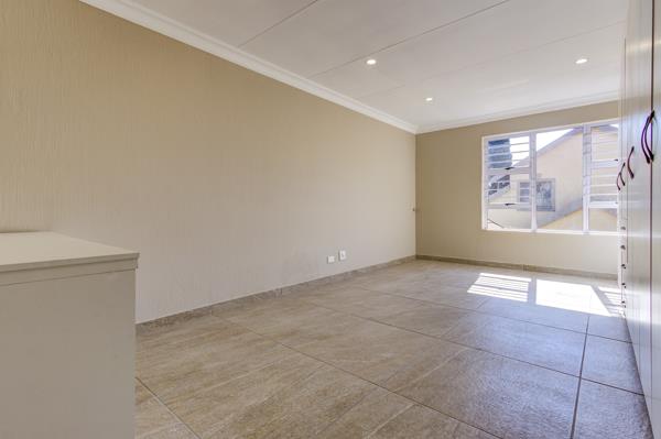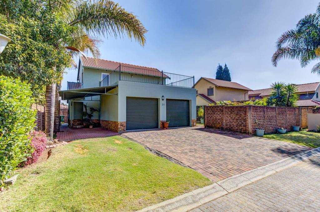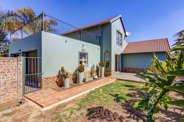 Outdoor amenities include a double garage and a covered carport, accommodating up to three vehicles. A private balcony/rooftop terrace and a paved patio offer versatile spaces for outdoor entertaining or quiet enjoyment. The compact garden area features a brick pathway and established plantings. Located in the desirable Boksburg area, this estate home provides an enhanced sense of security and community.