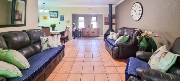 The well-appointed open-plan kitchen boasts ample cupboard space, a gas stove, walk-in pantry, and a separate scullery and laundry area. Step outside to discover a charming vegetable gardenperfect for those with a passion for gardening.