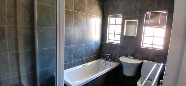 The property features three spacious bedrooms, each equipped with built-in cupboards, providing ample storage for your needs. The full bathroom is sleek and modern, offering a bath, shower, toilet, and basin, designed with both style and practicality in mind.