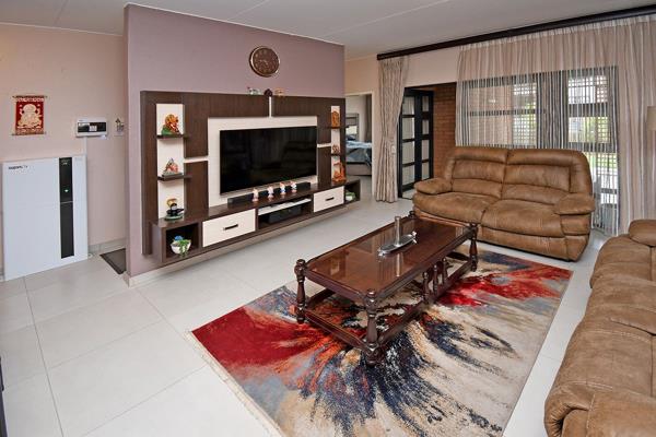 The enclosed patio, equipped with a built-in braai, opens onto a private garden an ideal space for entertaining or relaxing in peace.