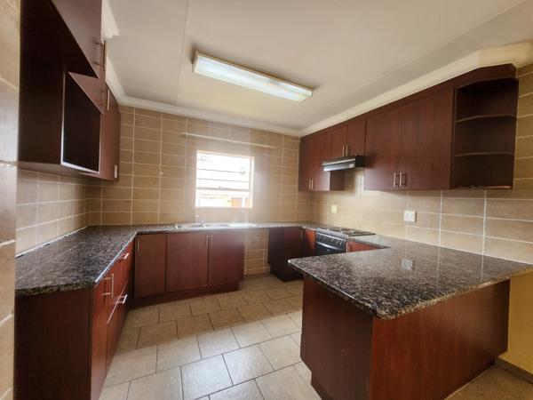 This meticulously presented residence, situated within a desirable complex in Bartletts, Boksburg, offers a harmonious blend of comfort and functionality. The interior features an open-plan living area, seamlessly integrating with a well-appointed kitchen. This culinary space boasts dark wood cabinetry, speckled granite countertops, an integrated hob, extractor fan, and a practical breakfast bar, all complemented by durable tiled flooring throughout.