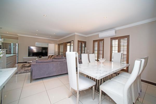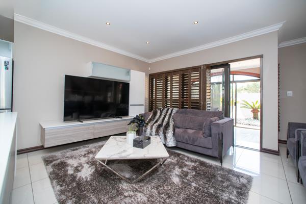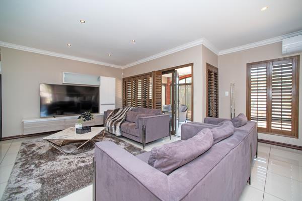 The living area extends effortlessly onto a spacious enclosed patio with stacking doors, opening out to an impressive outdoor boma... an entertainers dream for unforgettable gatherings.