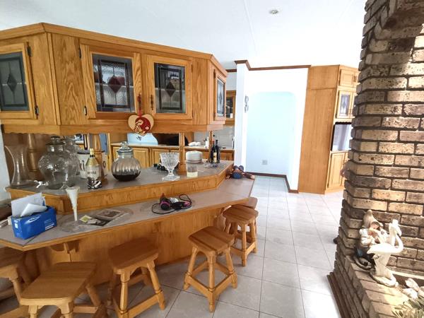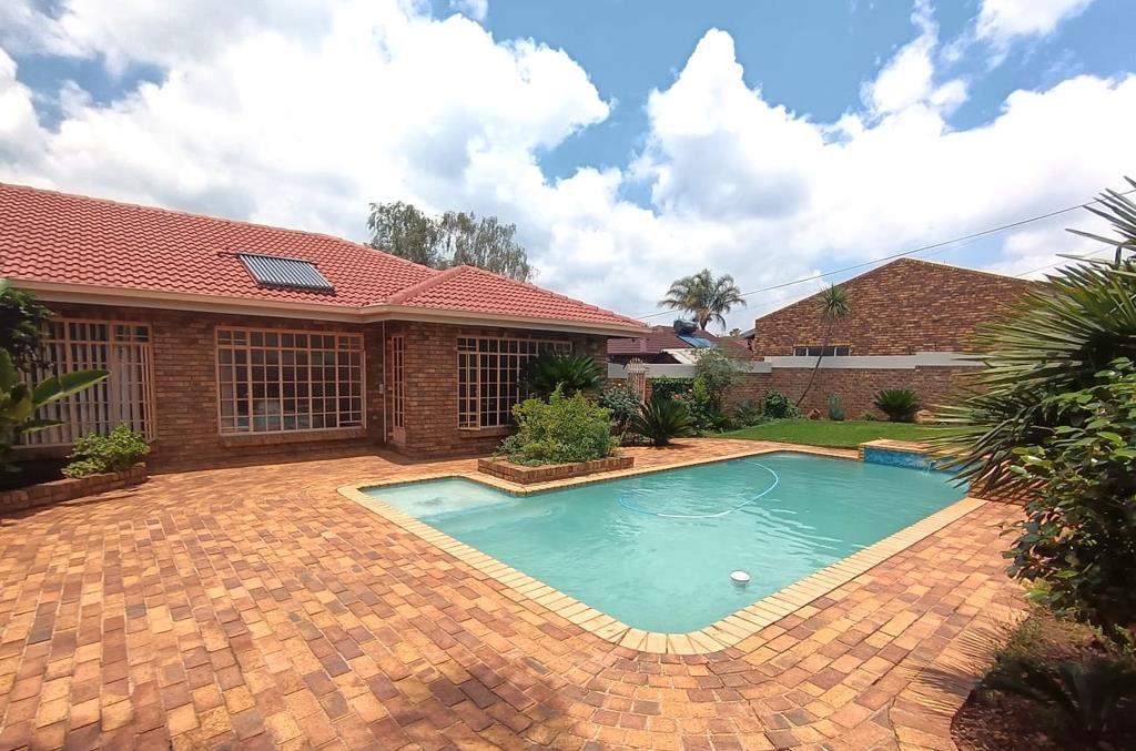 A generously sized kitchen with solid oak cabinets and a separate scullery area. The multiple living and entertainment areas, including a built-in and enclosed patio. The home features a double automated garage as well as a tandem three-car garage parking for up to five vehicles, prepaid electricity, a sparkling pool with manicured gardens. Domestic quarters and boundless space.