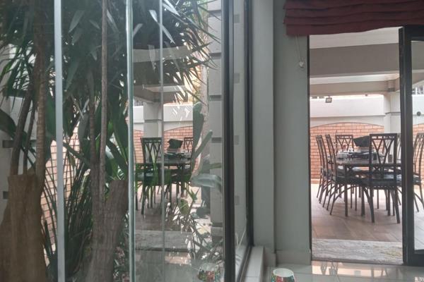 -Downstairs offers a small open plan entrance hall, guest toilet, lounge, enclosed glass atrium, dining room, large kitchen, with combo scullery, leading into a spacious family room, which ultimately leads out onto an enclosed patio, with built-in braai, overlooking a heated splash pool and established, private garden patio table and chairs to remain.