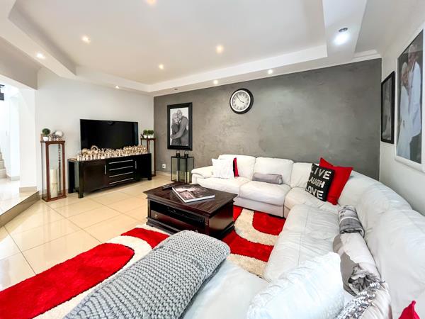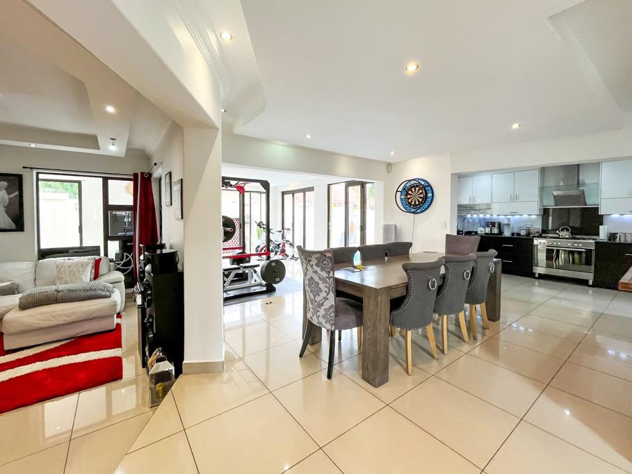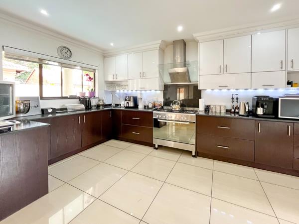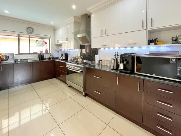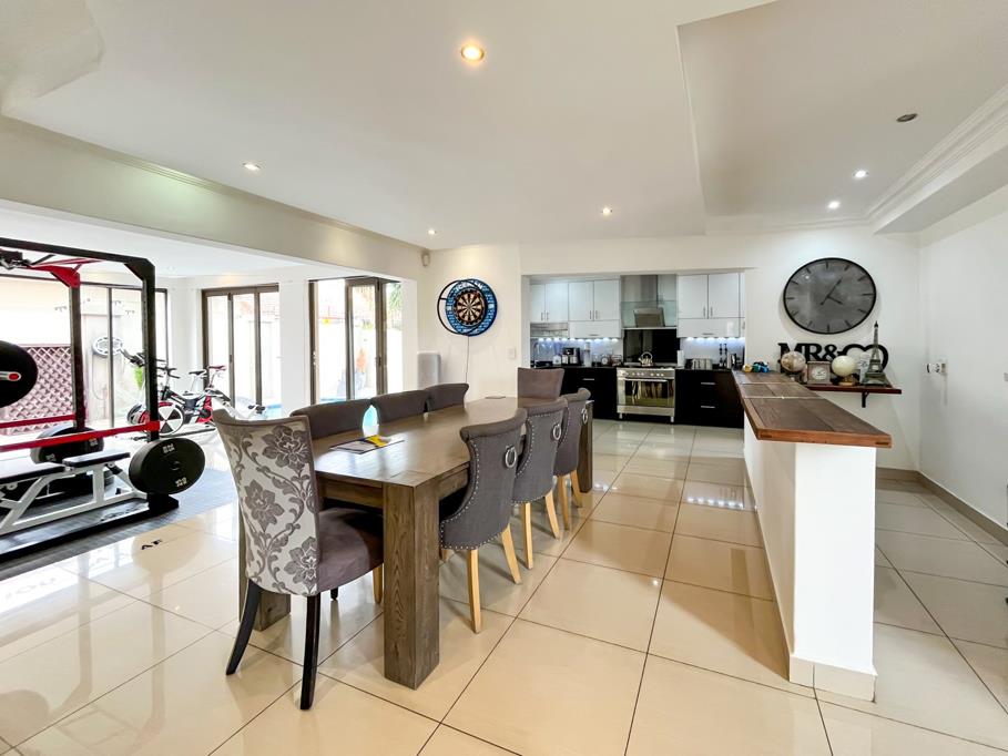 A spacious sunken lounge and separate dining room are all tiled and opening to a bar counter, entertainment room and a braai with doors leading to a private solar heated pool.