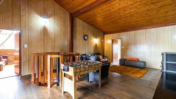 The stunning entertainment area is a true highlight, boasting a built-in bar and dining space, along with two separate toilets for added convenience. This area opens up to reveal a breathtaking view of the solar-heated pool, complete with a built-in braai and pizza oven ideal for hosting gatherings with family and friends.